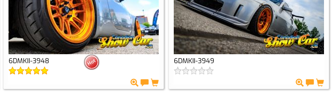 I will basically be adding photos from various events and private shoots that are in the galleries to the store bit by bit, so I will not always have everything from every show I have covered in the store. If you are looking through the galleries, look for a little shopping cart icon in the bottom right corner of each image (see detail image), if there is a cart icon, that image is avaiable for sale. That being said, if you see a photo you like in one of the galleries, but there is no cart icon, and you want to buy a digital copy of that image, make a note of the 6DMKII-XXXX number
